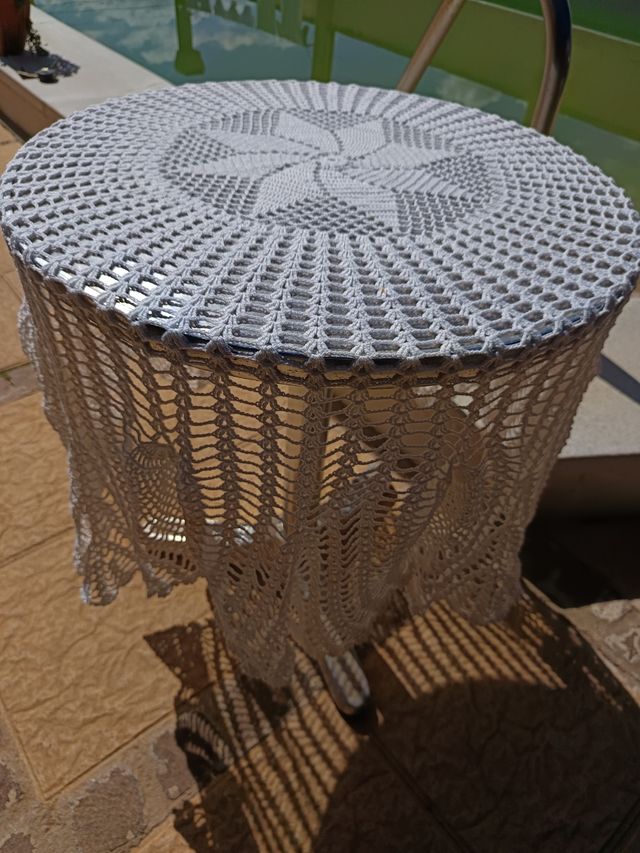 Hecho a mano con hilo de perlé de algodón en blanco, diámetro de 150cm, en muy buen estado, una artesanía