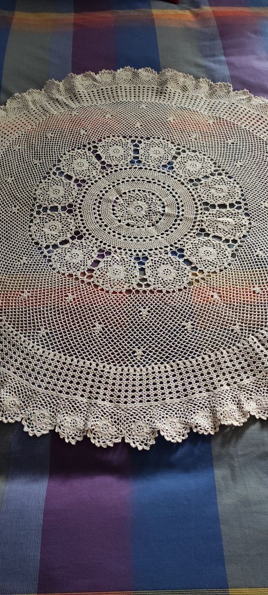 Tapete para mesa camilla, hecho con ganchillo. Está en perfectas condiciones.