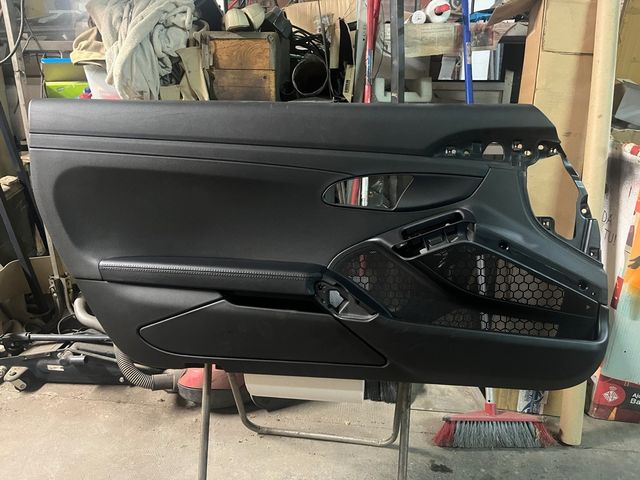 Tapizado de puerta para Porsche 911 modelo 991. Pieza de interior en color negro. Acabado básico sin piel ni Alcántara PIEZA NUEVA NUNCA MONTADA