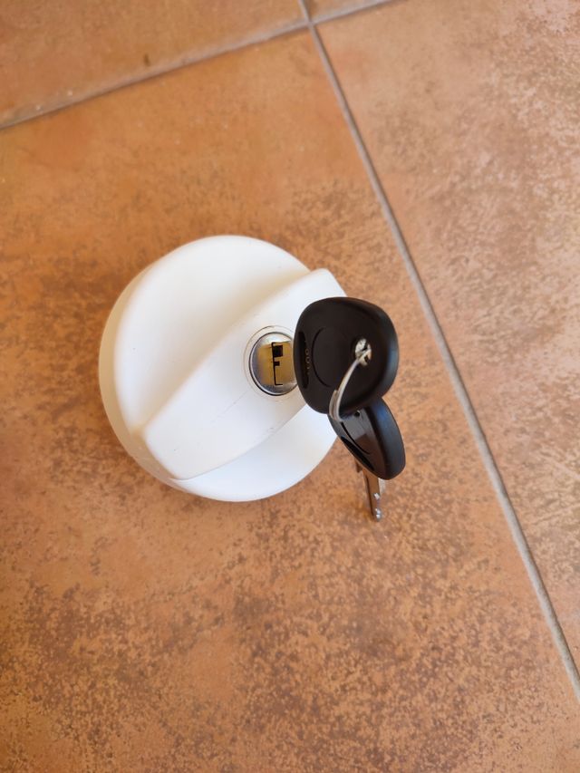 Sin usar. Tapón para entrada de relleno de agua en Autocaravana, con dos llaves de repuesto.