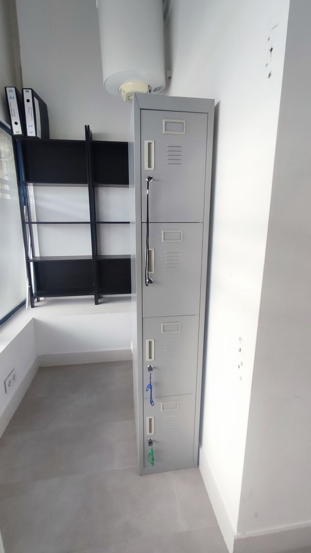 Taquilla metálica 4 puertas, de color gris con cerradura y llaves incluidas. 32 cm ancho, 1,80 cm alto. Fondo 50cm. Buen estado, poco uso.