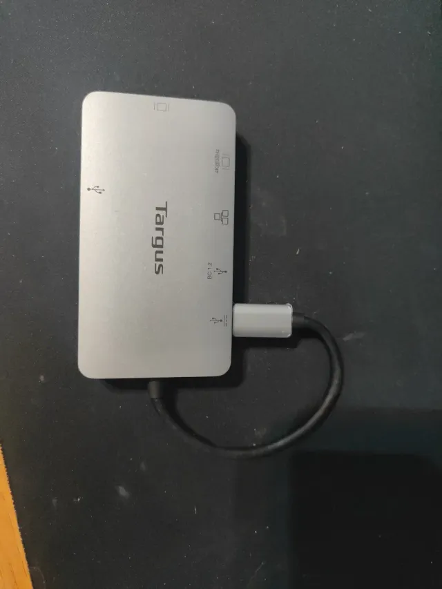 Hub Targus Dock419 de aluminio plateado. - Puertos USB-A. - Puertos USB-C. - Puerto DisplayPort. - Puerto Ethernet.