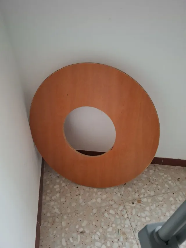 Tarima redonda de madera, ideal para colocar un brasero. - Material: Madera.