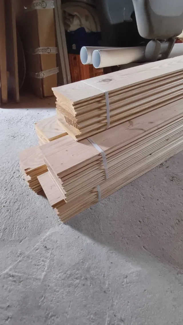 Tarima de madera de pino, cepillada nueva. Largo 250 Ancho 0,15 Grosor 2,2mm - Material: Pino - Acabado: Cepillado