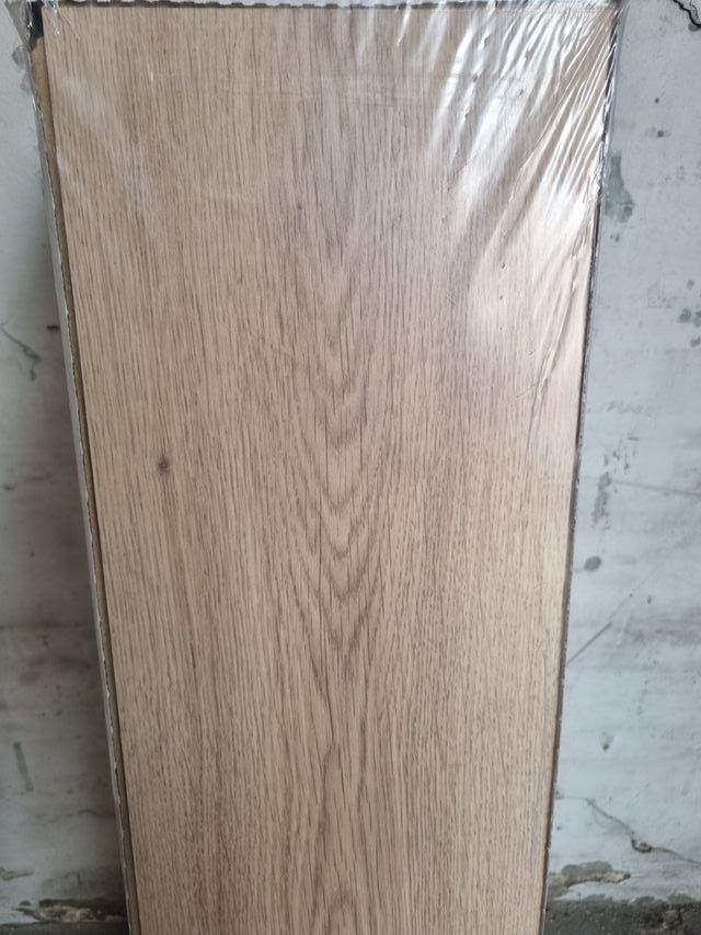 Tarima flotante de la marca Pergo en buen estado. 6 cajas nuevas sin abrir, color roble natural, total metros 10,944 m2 - Diseño de vetas naturales.