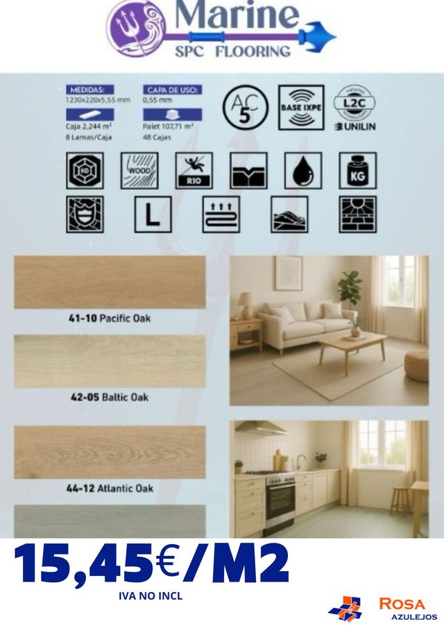- Variedad de diseños: Pacific Oak, Baltic Oak y Atlantic Oak.