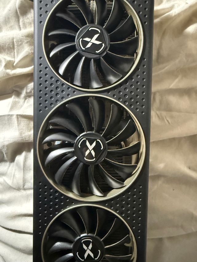 Detalles del productoTarjeta gráfica AMD Radeon RX 6750 XT con un diseño de triple ventilador para una refrigeración eficiente.