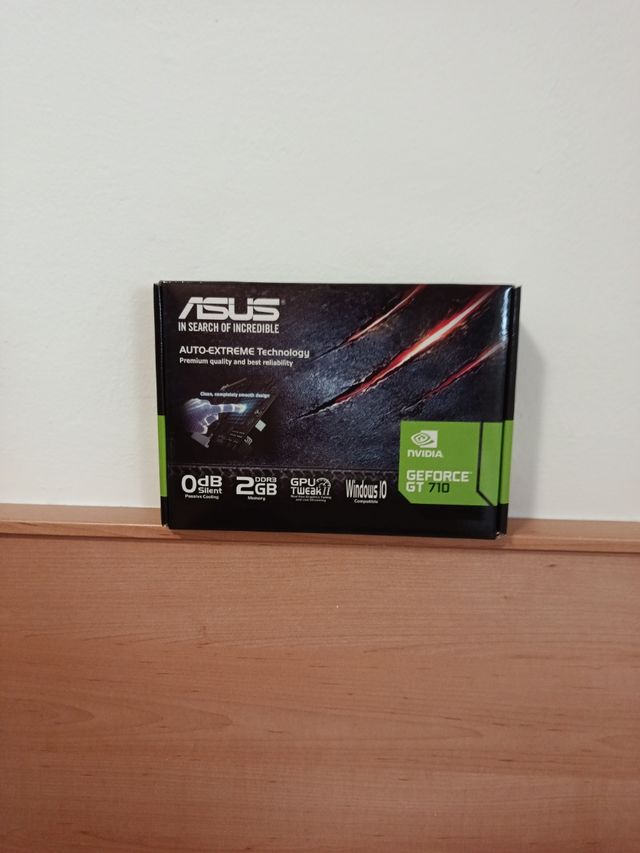 Tarjeta gráfica ASUS GeForce GT 710 con 2GB de memoria DDR3. - Tecnología AUTO-EXTREME. - Silent Passive Cooling. - Compatible con Windows 10.