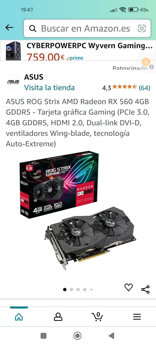 Tarjeta grafica Asus RX 560 4gb