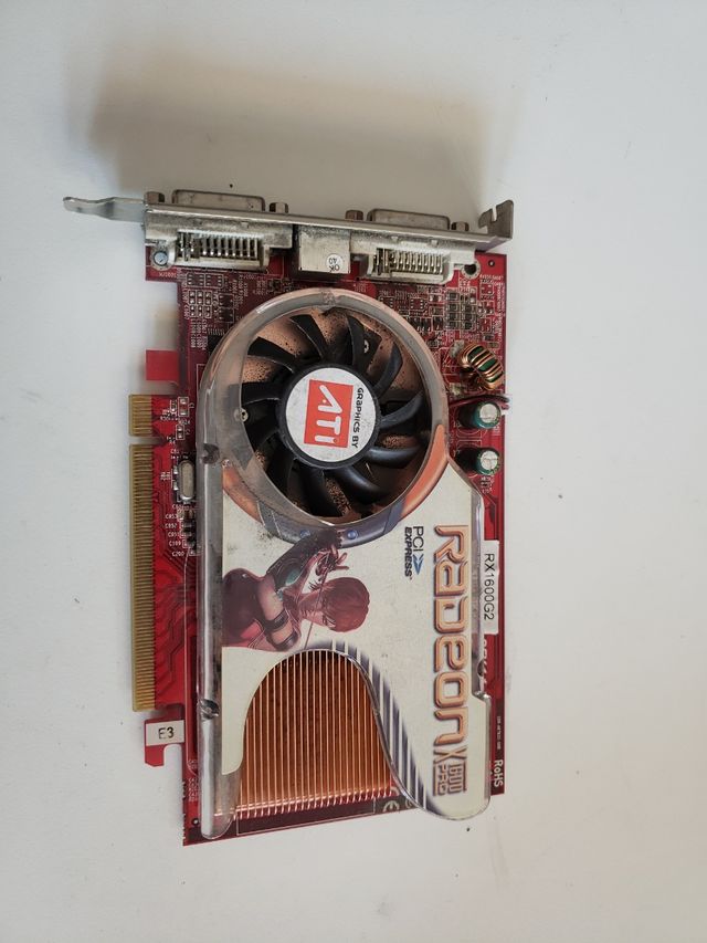 Tarjeta gráfica ATI Radeon X1600G2 usada y para reparar seguramente. - Modelo: Radeon X1600G2 - Interfaz PCI Express - Con ventilador