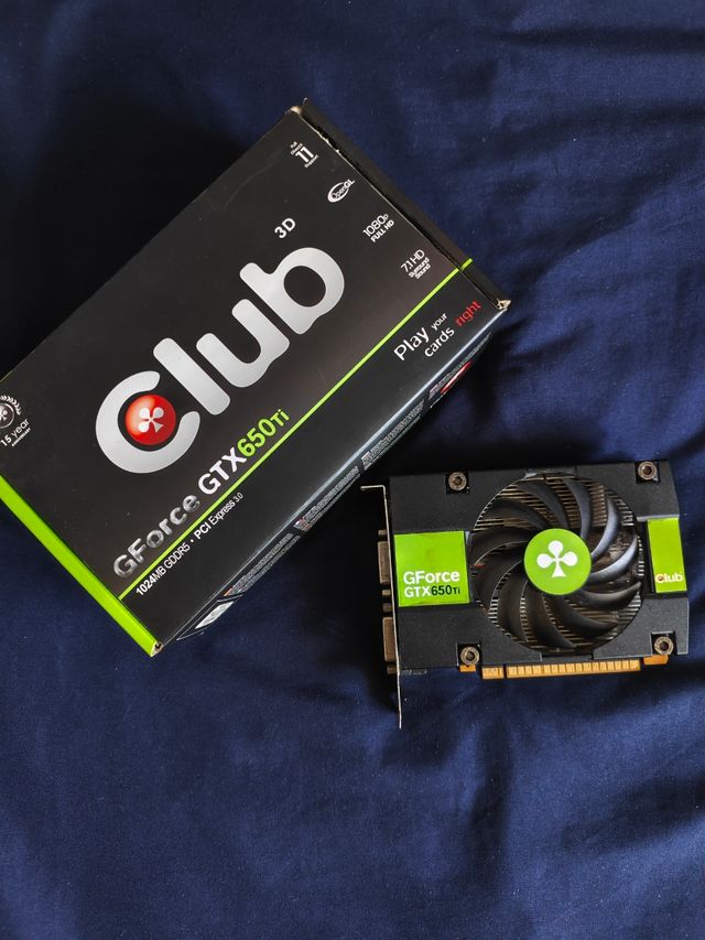 Detalles del productoVendo tarjeta gráfica Club 3D GeForce GTX 650Ti de 1GB. Está en buenas condiciones y se incluye la caja original.