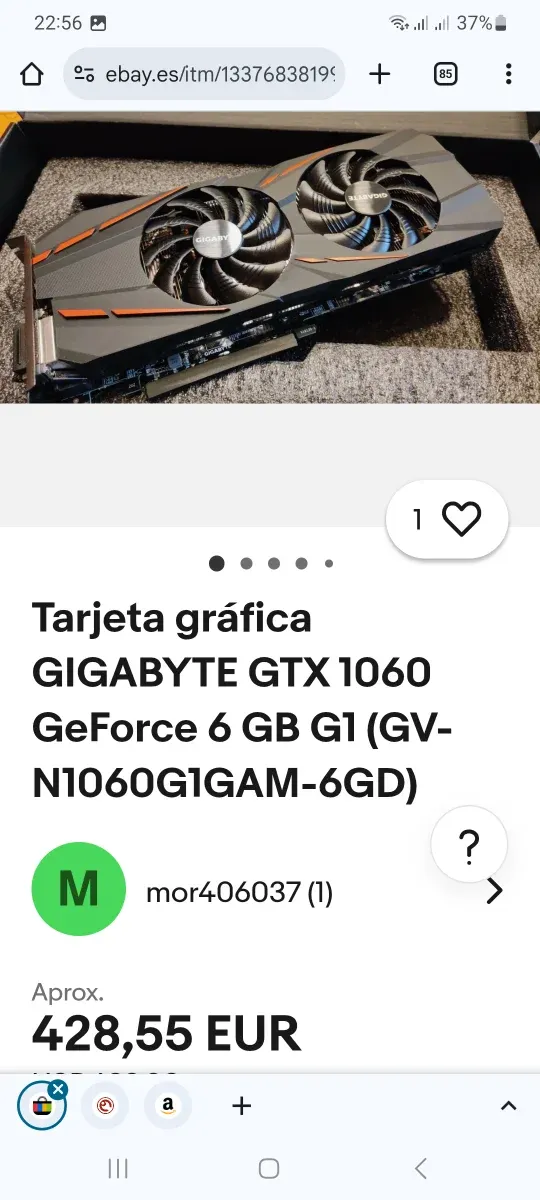 Detalles del productoTarjeta gráfica GIGABYTE GTX 1060 GeForce 6 GB G1.