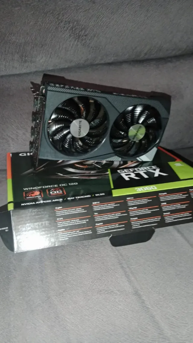 Detalles del productoTarjeta gráfica Gigabyte RTX 3060 con 12GB de memoria VRAM.