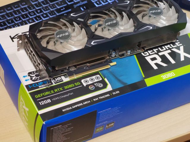 Detalles del productoTarjeta gráfica KFA2 GeForce RTX 3080 SG con 12GB de memoria.