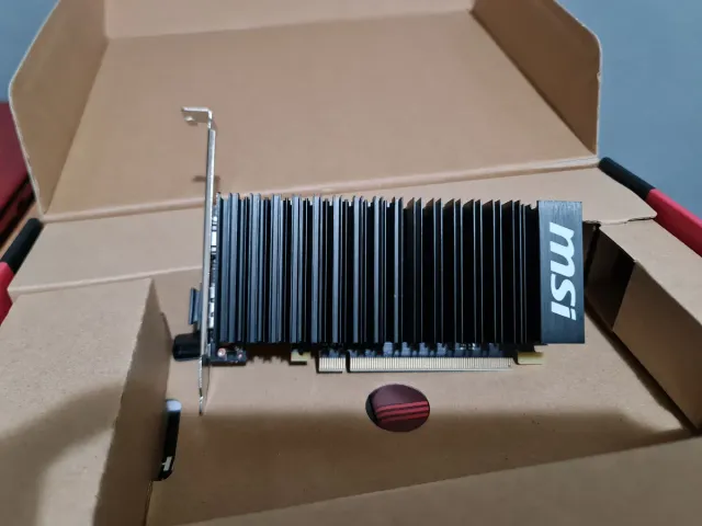 MSI geforce gt 1030 2gb prácticamente nueva sin uso se quito de ordenador nuevo i no se uso - Disipador en negro - Diseño compacto. - Logo MSI en el lateral.