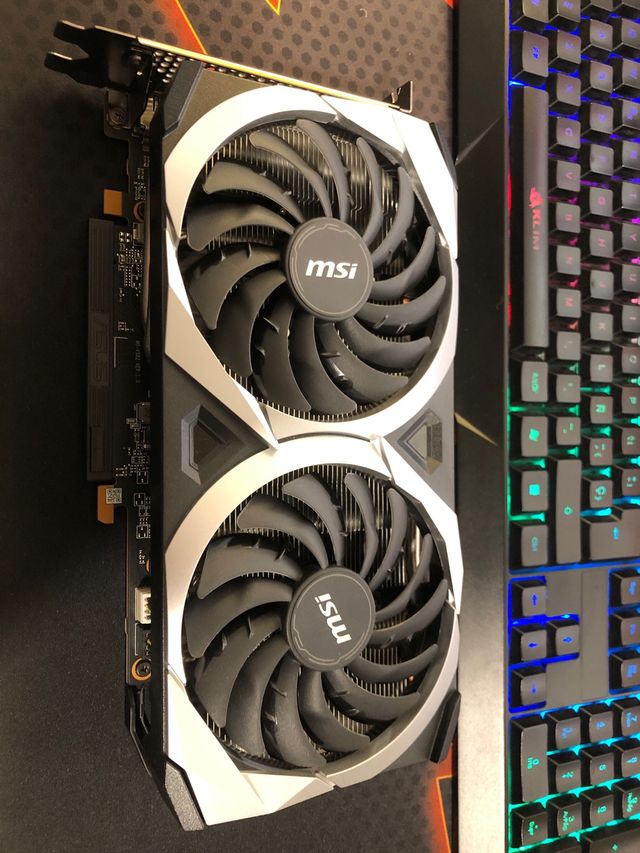 Detalles del productoTarjeta gráfica MSI con ventiladores duales.