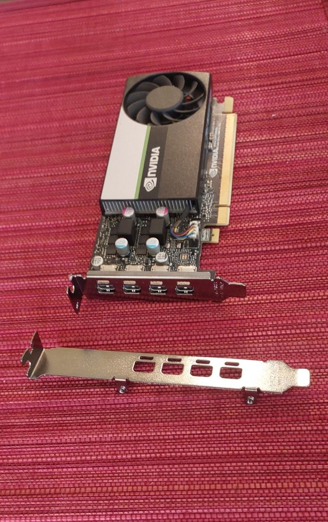 Detalles del productoTarjeta gráfica NVIDIA PNY Quadro T1000 de 4GB en perfecto estado, con un ventilador. Incluye soporte corto y largo para la GPU.