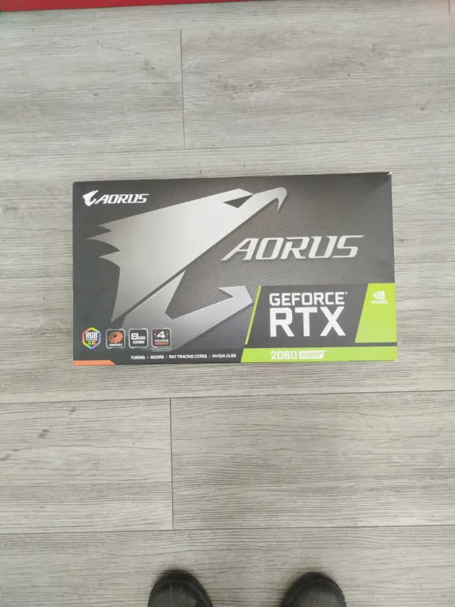 Detalles del productoTarjeta gráfica AORUS GeForce RTX 2060 Super con 8GB de memoria.