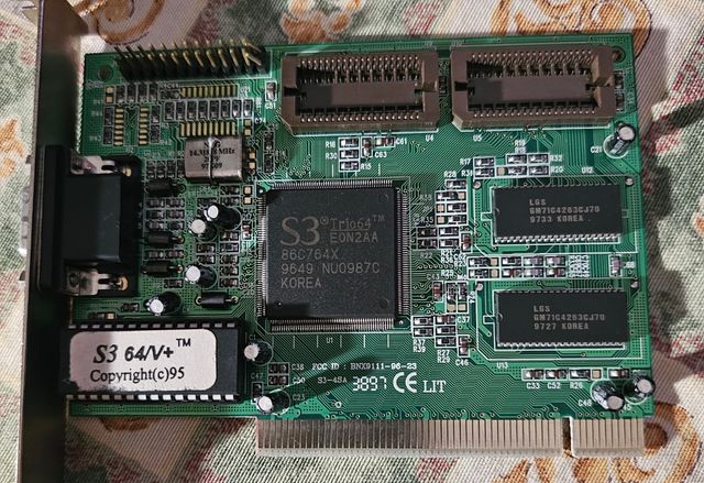 Tarjeta gráfica S3 64V+ PCI en buen estado. Se incluye la tarjeta tal cual se ve en las fotos. - Modelo: S3 64V+ - Interfaz: PCI - Chipset: Trio64