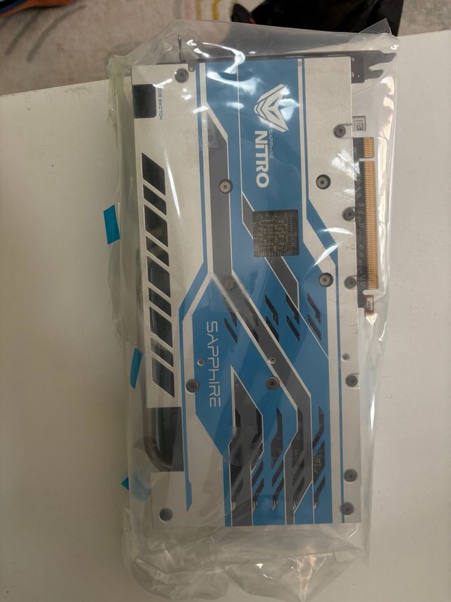 Tarjeta gráfica Sapphire RX 580 Nitro+ con 8GB de memoria en color azul. Diseñada para un rendimiento potente.