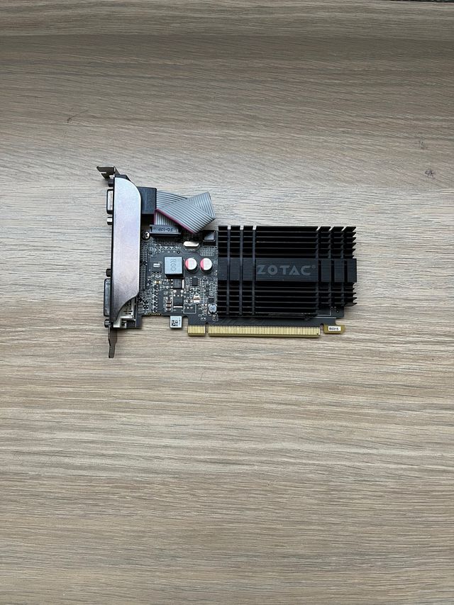 Tarjeta gráfica Zotac en buen estado. - Funciona correctamente. - Diseño compacto y ligero. - Perfecta para configuraciones de bajo consumo.