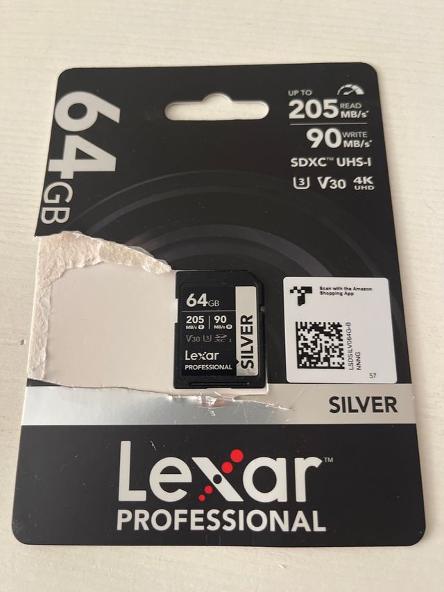 Detalles del productoTarjeta de memoria Lexar Professional Silver de 64GB.