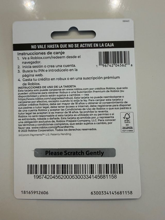 Tarjeta de crédito para Roblox con un valor de 10€. - Instrucciones de canje incluidas en el reverso. - se compró por error. Sin uso.