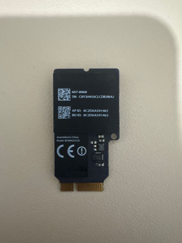 Vendo tarjeta inalámbrica para iMac A1418 y A1419 de Apple. Está en buenas condiciones. - Modelo BCM94331CD / 607-8968 - Incluye 1 tarjeta.