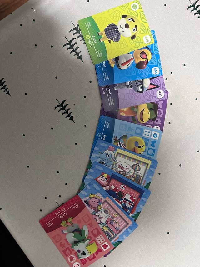 Detalles del productoColección de tarjetas Amiibo para Nintendo Switch del juego Animal Crossing. Incluye personajes como Frett, Wilbur, Celia y más.