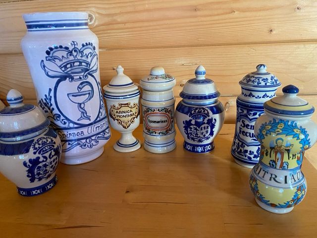 Conjunto de siete tarros de boticario de cerámica, lo q se ve en las fotos Tarros de farmacia