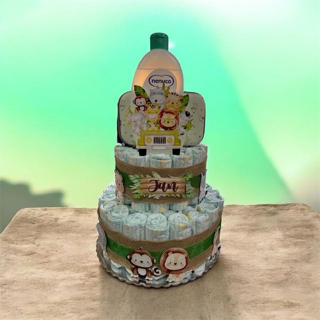 Original tarta de pañales totalmente personalizada, ideal para un regalo de bienvenida. Pregunta por la tuya sin compromiso!
