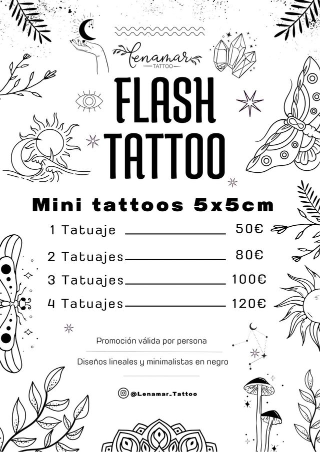 Solo tattoos pequeños (hasta 5cm), un color, sin sombra.