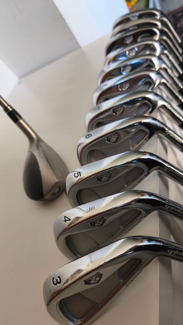 El mejor forjado que haya hecho Taylormade, completísimo set desde el 3 hasta el Pw en los hierros. Gw, Sw y Lw. Además híbrido 3 Taylormade rescue tp de 19º