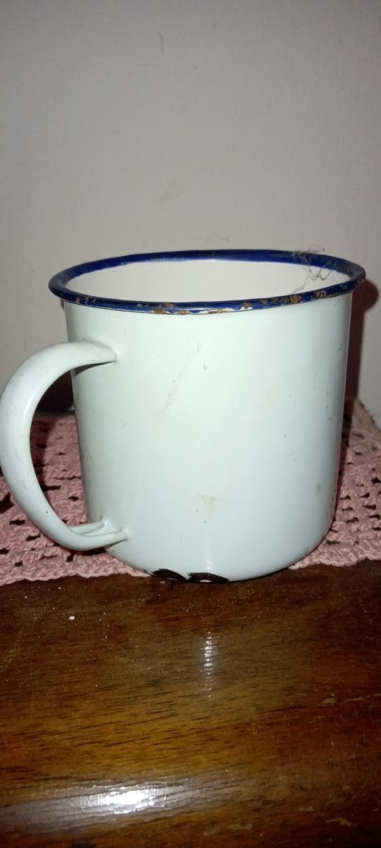 Taza antigua esmaltada . Mira mi perfil que tengo muchas cosas bonitas más y para todos los gustos y todos los bolsillos.
