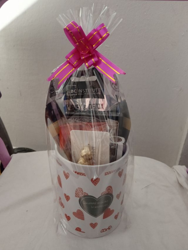 - mascarilla pintalabios, pendientes, paleta de sombras y dos chocolates