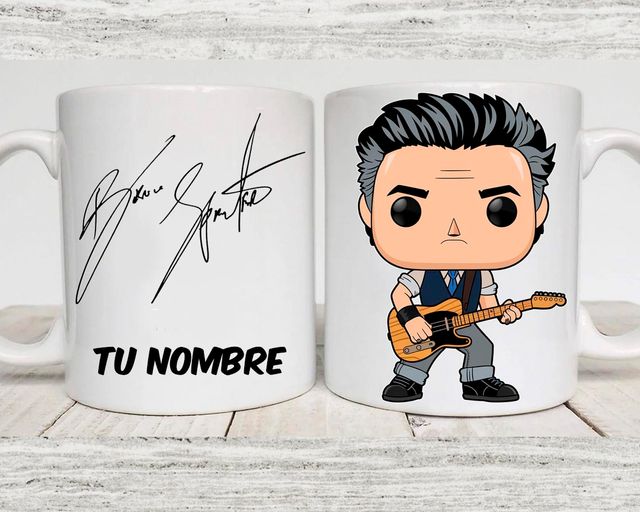 Detalles del productoTaza de Bruce Springsteen con su firma y personalizada con tu nombre.