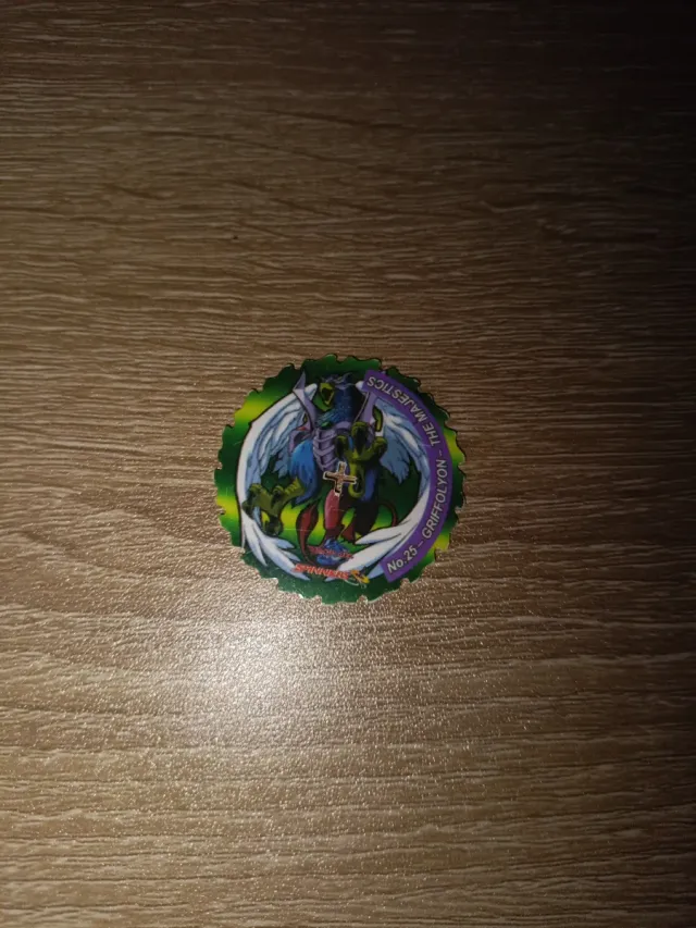 Tazo de Beyblade, número 25, con la criatura Griffolyon. Muy difícil de encontrar ya que era de Bollycao