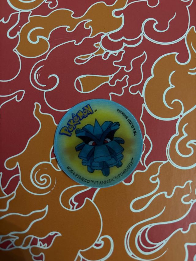Tazo coleccionable de Pokémon boomer 2001. - Diseño redondo con personaje. - Ilustración de Pokémon. - Copyright 2001 Nintendo.