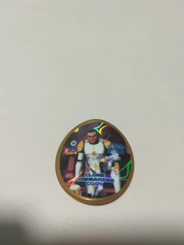 Tazo coleccionable de Star Wars. - Personaje: Clone Commander Cody. - Diseño holográfico. - Número 15.