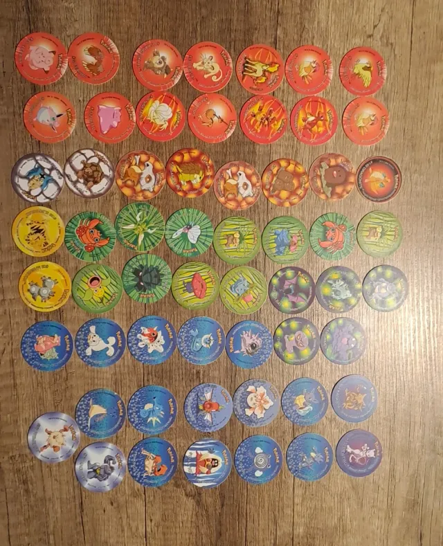 Detalles del productoColección de tazos de Pokémon.