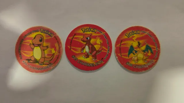 Tazos Pokémon Charmander, Charmeleon y Charizard