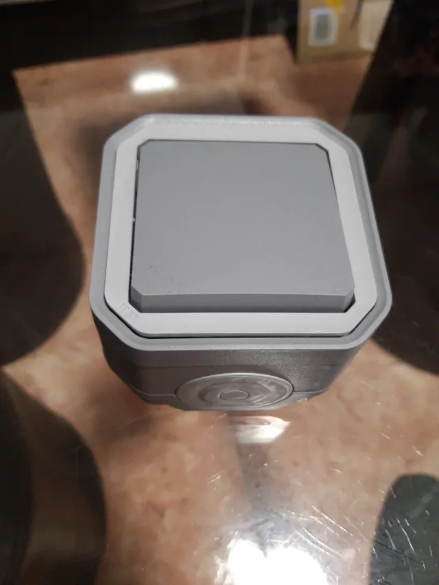 Tecla exterior de la marca Legrand. Diseño moderno y acabado en gris. - Material resistente. - Instalación sencilla.