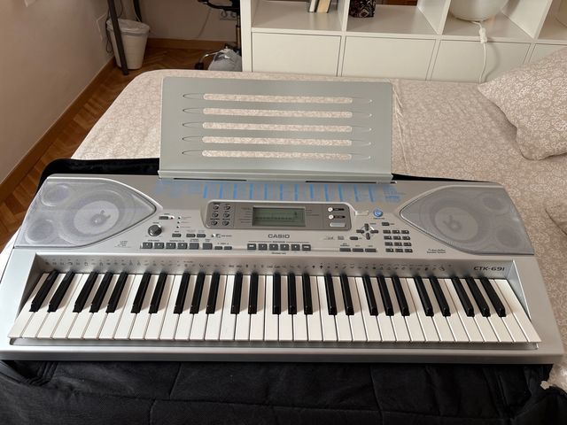 Casio CTK-691 en buen estado. Incluye soporte. Incluye funda - 61 teclas. - Buen sonido. - Diseño elegante.