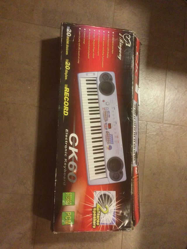 Detalles del productoTeclado electrónico Ringway CK60 con 61 teclas de tamaño estándar. Ideal para aprender y practicar.