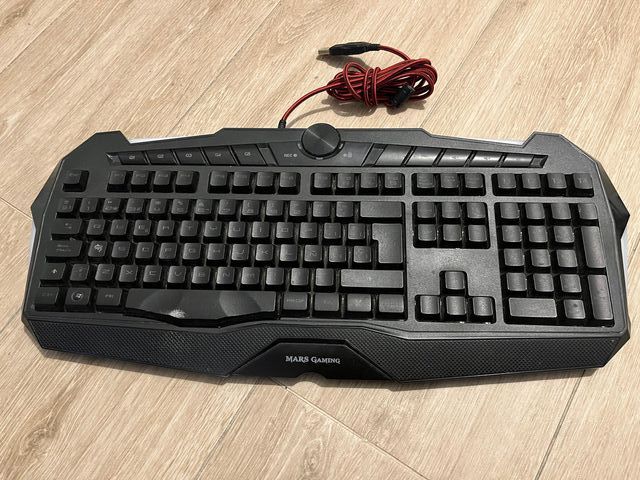 Teclado de gaming robusto. - Retroiluminación personalizable. - Diseño ergonómico con reposamuñecas. - Teclas multimedia y de acceso rápido.