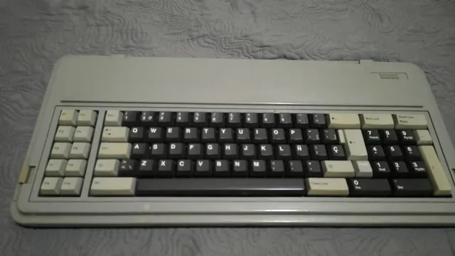 Teclado de ordenador en color gris, con un diseño clásico y retro. - Teclas con disposición QWERTY. - Incluye teclas de función F1-F10. - Diseño compacto.