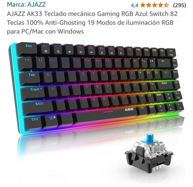 Teclado mecánico Gaming RGB AJAZZ AK33 Switch 82 Teclas 100% Anti-Ghosting 19 Modos de iluminación RGB para PC/Mac con Windows