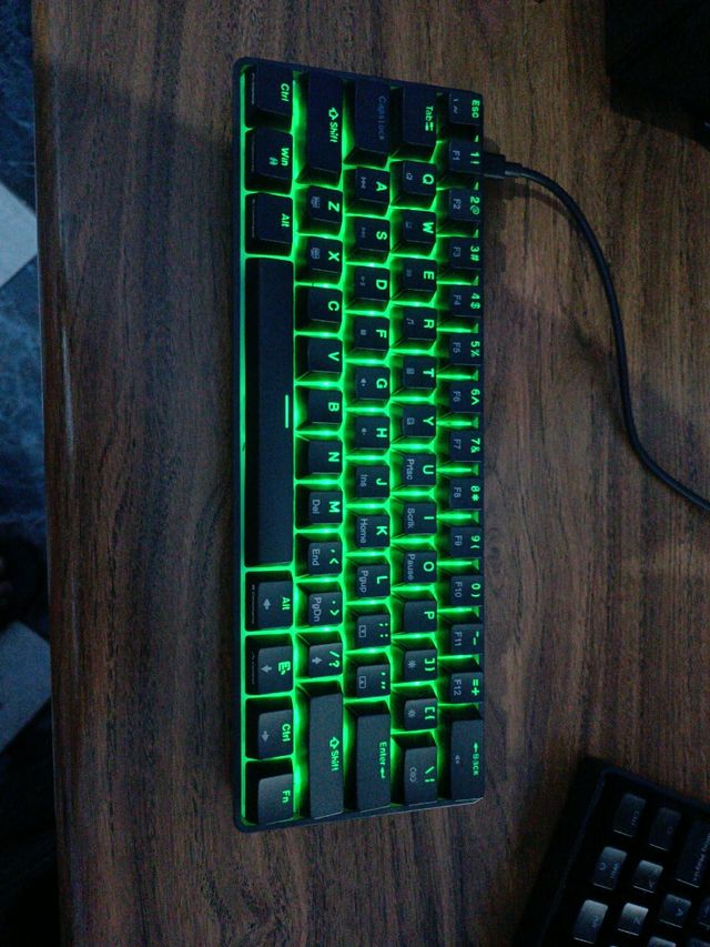 En buen estado la caja no es del teclado, pero el teclado está como nuevo es un 60% mecánico precio algo negociable. IDEAL para reyes
