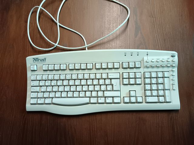 Detalles del productoTeclado mecánico PS/2 Trust modelo SK-2500. Funciona correctamente. Medidas: 47´5x 19 cm. Peso: 1300 gr. aprox.