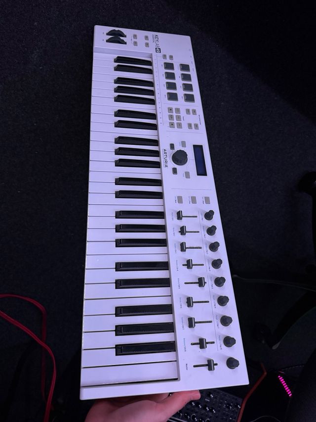 Detalles del productoTeclado controlador MIDI Arturia KeyLab 49 en color blanco. Ideal para producción musical.